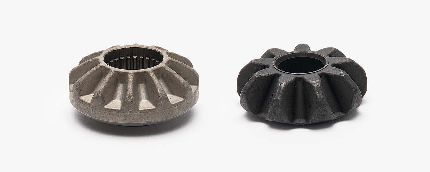 Kegelräder werden als Ausgleichs- und Achswellenräder in Kegelraddifferentialen eingesetzt. Insbesondere bei Elektrofahrzeugen muss das Differential große Drehmomente übertragen. Hirschvogel fertigt hochbelastbare Differential-Kegelräder mit bester Verzahnungsqualität und geringster Oberflächenrauheit. Der hohe Automatisierungsgrad garantiert dabei auch am Standort Deutschland eine kosten- und ressourcenoptimale Produktion. Als Entwicklungspartner verfügt Hirschvogel über umfangreiche Berechnungsmöglichkeiten sowie Prüfstände zur Absicherung der Betriebsfestigkeit.