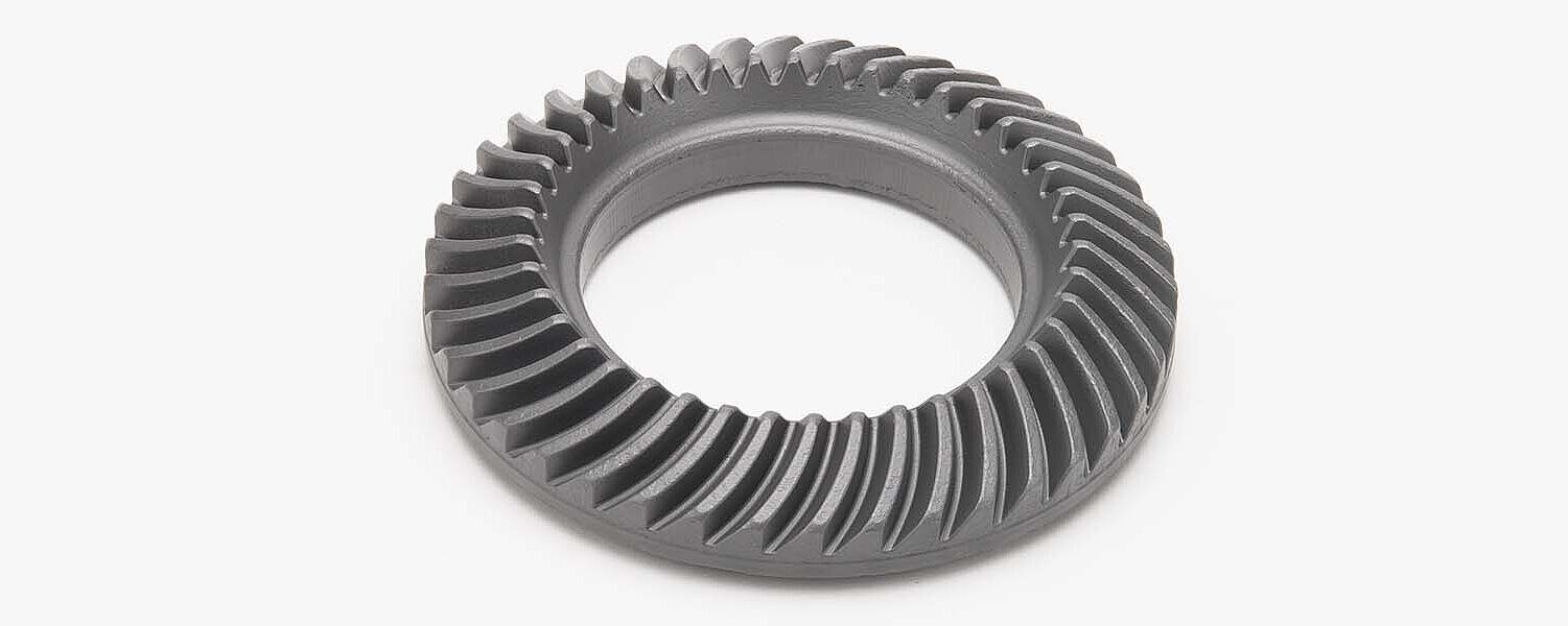 Tellerräder dienen in Verbindung mit Antriebskegelrädern zur Kraftumlenkung um 90° im Antriebsstrang, zum Beispiel bei Heck- oder Allradantrieben. Üblich ist, die Hypoid-Verzahnung aus einem einfachen Schmiederohling zu zerspanen. Hirschvogel hat dagegen einen Umformprozess entwickelt und erfolgreich in Serie eingeführt, durch den bereits eine Vorverzahnung in das Umformteil eingeschmiedet werden kann. Gegenüber Wettbewerbsbauteilen ohne Vorverzahnung kann so Rohmaterial eingespart werden, was sich positiv auf den CO2-Footprint auswirkt. Vor allem aber reduzieren sich in der anschließenden Zerspanung die Bearbeitungszeiten und der Werkzeugverschleiß und damit die Kosten.