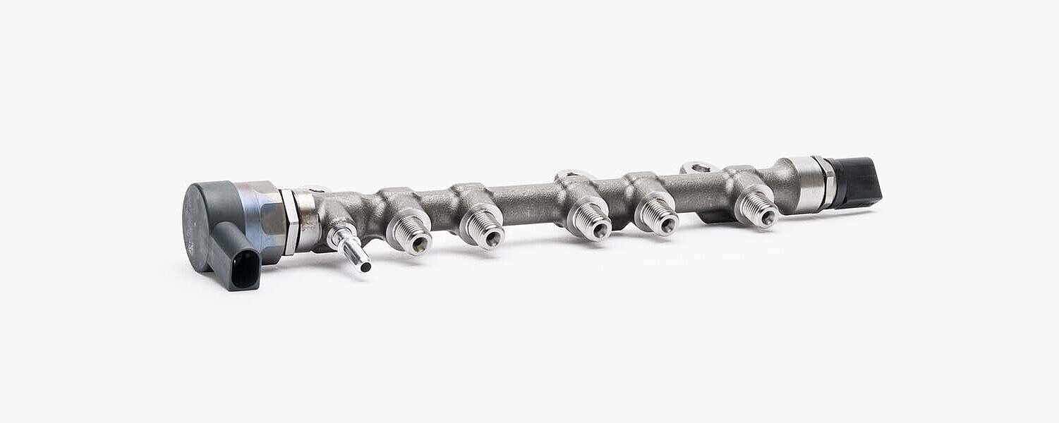 Das für Common-Rail Diesel namensgebende Rail verteilt den von der Hochdruckpumpe auf bis zu 2.700 bar komprimierten Kraftstoff an die Injektoren der jeweiligen Zylinder. Gleichzeitig dient es als Hochdruck-Kraftstoffspeicher, um Druckschwankungen auszugleichen. Ob Pkw, Lkw oder Baumaschine: Hirschvogel hat langjährige Erfahrung in der Auslegung und Fertigung unterschiedlichster Rails für verschiedenste Anwendungen.