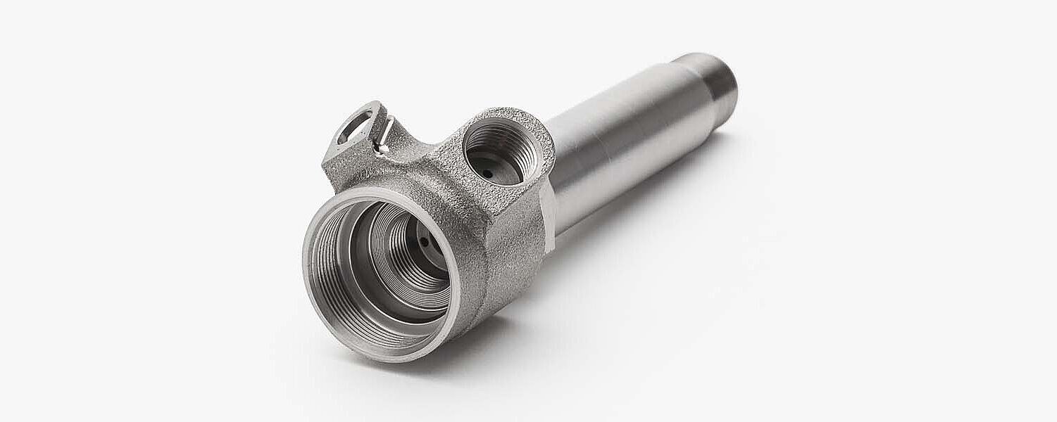 Beim Dieselmotor spritzen die Injektoren den Kraftstoff mit einem Druck von bis zu 2.700 bar in den Brennraum. Das Gehäuse des Injektors, der sogenannte Injektorkörper, ist dabei einer ständigen Druckschwellbelastung ausgesetzt. Massivumgeformte Injektorkörper stellen mit ihrem ununterbrochenen Faserverlauf die Funktion dauerhaft sicher. Hirschvogel fertigt Diesel-Injektorkörper für Pkw und Lkw auf hochproduktiven, vollständig automatisierten Anlagen in größten Stückzahlen (> 25 Mio. pro Jahr).