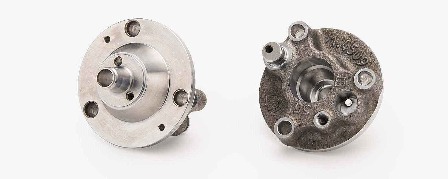Strenge Emissionsgrenzwerte erfordern eine bestmögliche Abgasreinigung. Das beim Dieselmotor übliche SCR-System macht dabei die Einspritzung einer Harnstofflösung in den Abgasstrom notwendig. Bei bestimmten Fahrzeugen kommt auch eine Dieseleinspritzung in den Abgasstrom zur Regeneration des Dieselpartikelfilters (DPF) zum Einsatz. Gehäuse für derartige Dosiermodule für Harnstofflösungen oder Dieselkraftstoffe fertigt Hirschvogel in verschiedenen Versionen. Zur dauerhaften Sicherstellung der Funktion unter korrosiven Bedingungen werden dabei rostfreie Stahlsorten verwendet.
