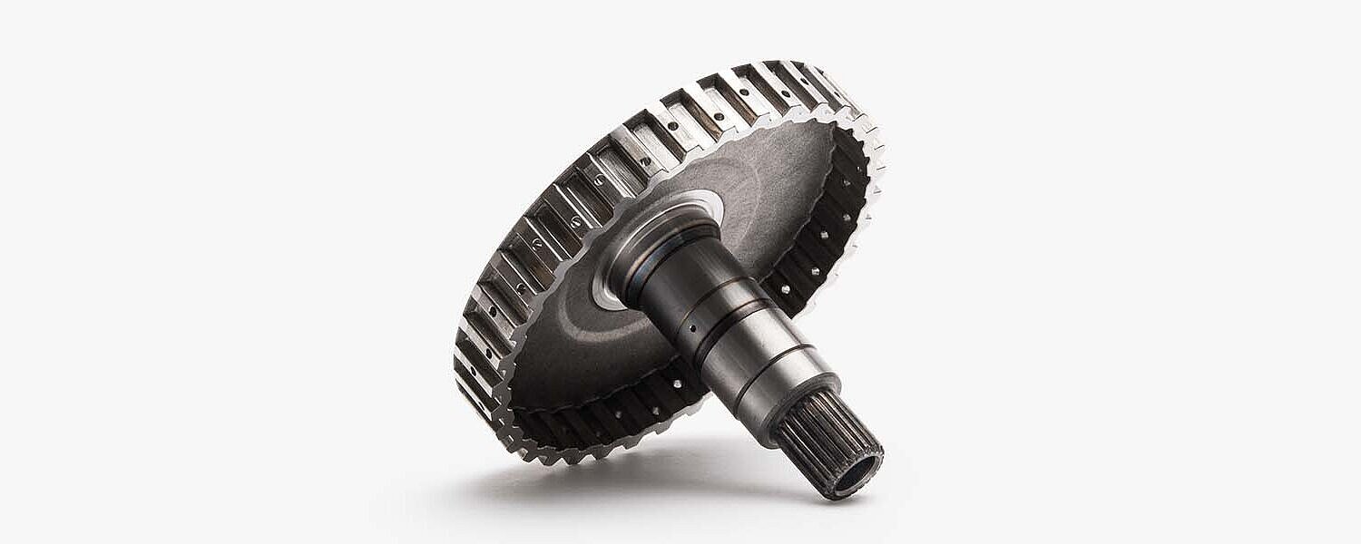 Los ejes de entrada para módulos híbridos conectan el motor de combustión con el módulo híbrido P2. El eje de entrada también acomoda las estrías de laminillas para el embrague. En Hirschvogel, fabricamos tanto variantes mono bloque como diseños soldados de dos piezas que comprenden un eje y una chapa de metal. Los tipos mono bloque tienen dos ventajas decisivas. Mediante el forjado, se puede generar un tope en un extremo de las estrías de las laminillas. Esto sostiene las laminillas de acoplamiento montadas durante el montaje, simplificando así el manejo. En comparación con las soluciones de chapa, los costos de las herramientas pueden reducirse significativamente, lo que representa una ventaja decisiva, especialmente para cantidades medias.