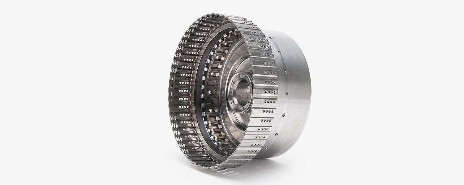 Los portadores de rotor forman el elemento central de los módulos híbridos P2. El exterior del soporte del rotor sirve como área de unión para la pila de láminas del rotor del motor eléctrico. En el interior, según el diseño, hay una o más estrías de laminillas. Estos forman parte del embrague para separar el motor eléctrico de la cadena cinemática así como el doble embrague de la transmisión.