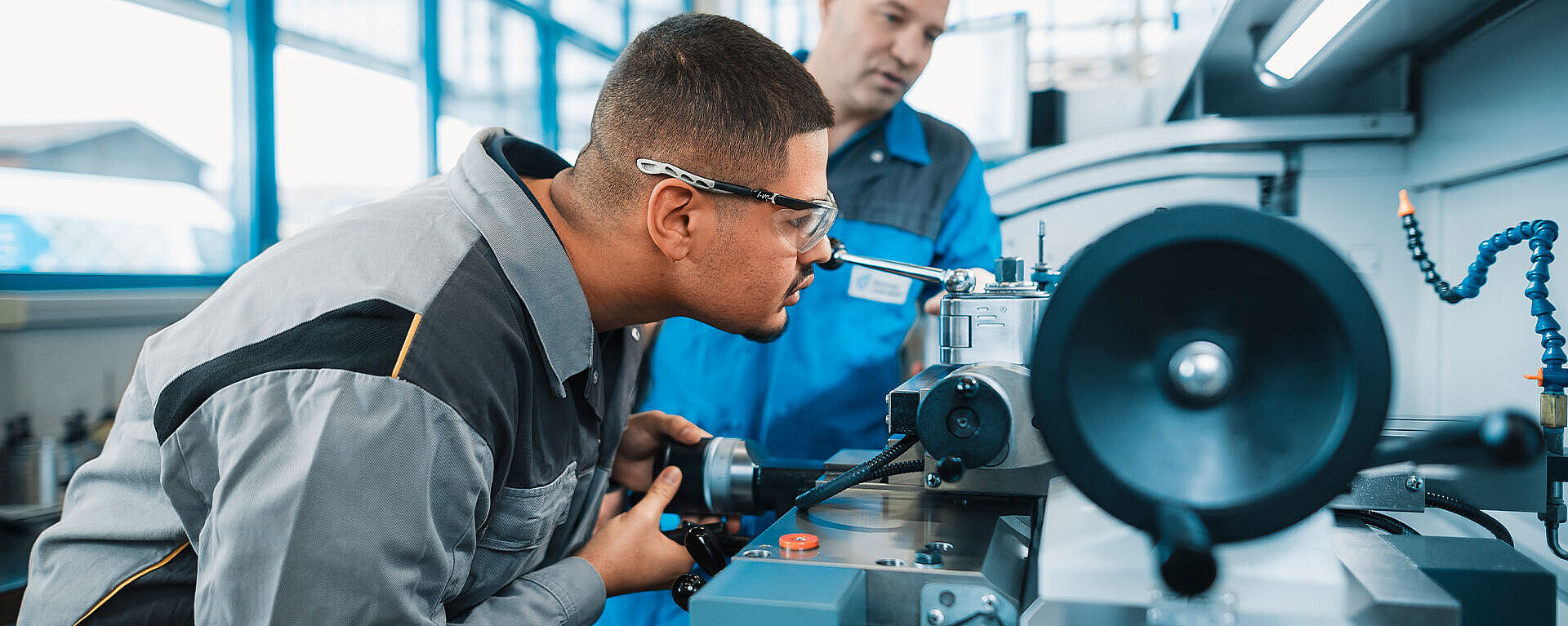 Du lernst die Produktion der Serienfertigung an Drehmaschinen, Fräsmaschinen und Drehfräszentren in Fertigungslinien. Zu Deinen Aufgaben gehören auch das Einstellen der Maschinen, Roboter und Automationen. Du sorgst für den optimalen Ablauf zwischen Maschine, Roboter und Automation. Qualitätsprüfungen, Werkzeugwechsel und Wartungsarbeiten sind nur einige Deiner weiteren vielfältigen, spannenden Aufgaben.